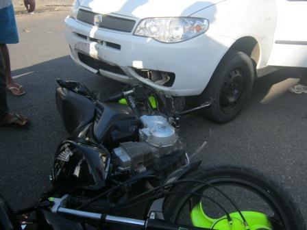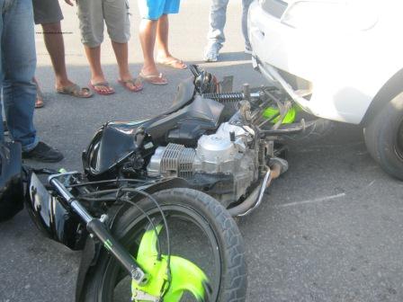 O moto taxi, conhecido por Michel, que trabalha na praça em frente a igreja do Rosário, teve sua moto quase que destruída, quando um veiculo gol, bateu na traseira da moto(imagens abaixo), graças a Deus os danos foi apenas material, informações dão conta que a habilitação do motorista estava vencida.